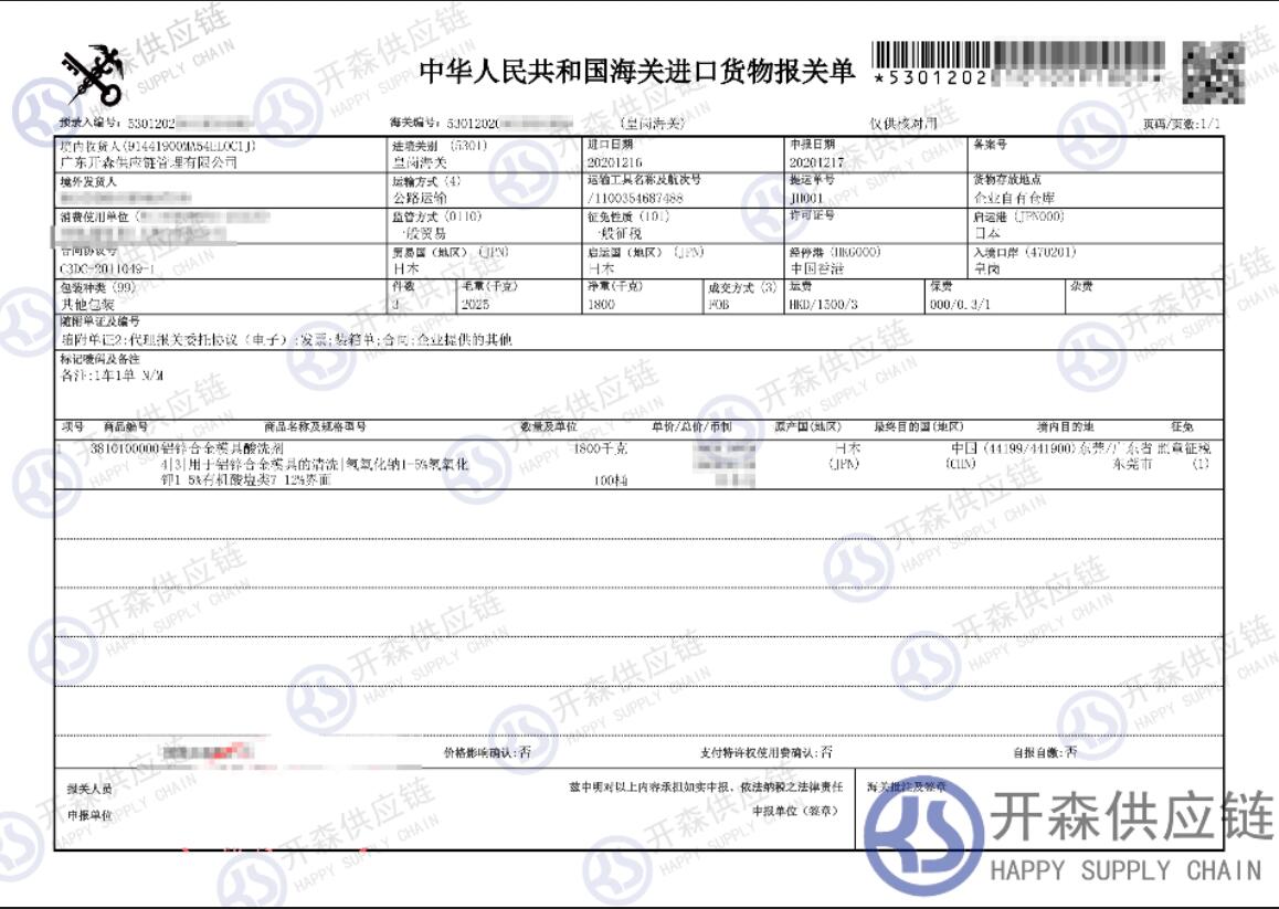 【導讀】您正在閱讀的是關于深圳港日本清潔劑進口報關清關代理服務【經典案例】的內容,本文由開森化工品進口報關代理小編整理編寫;