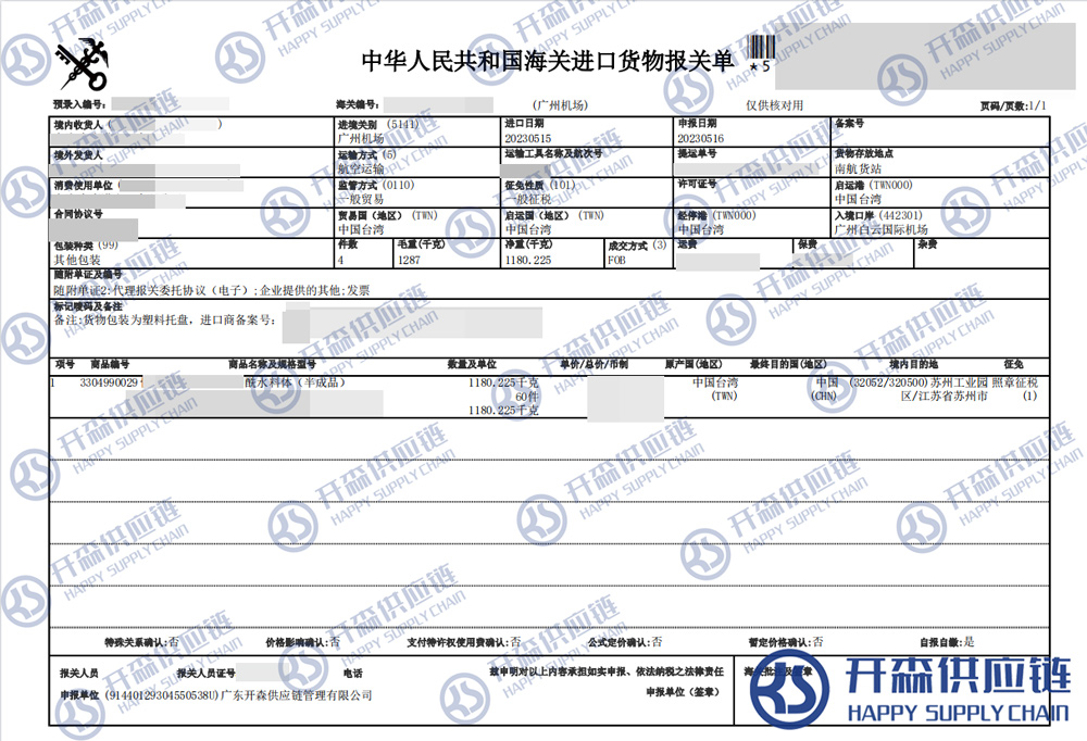 一、中國臺灣化妝品半成品進(jìn)口報關(guān)代理案例詳情