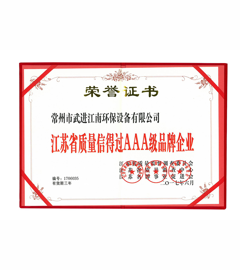 • 江蘇省質量信得過AAA級品牌企業