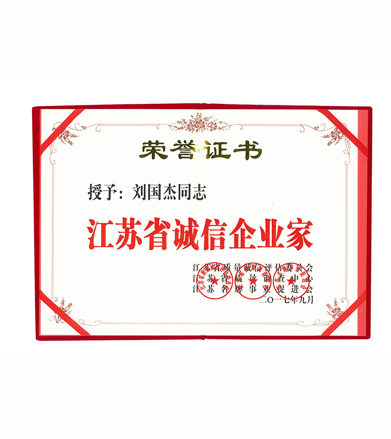 江蘇省誠信企業家證書