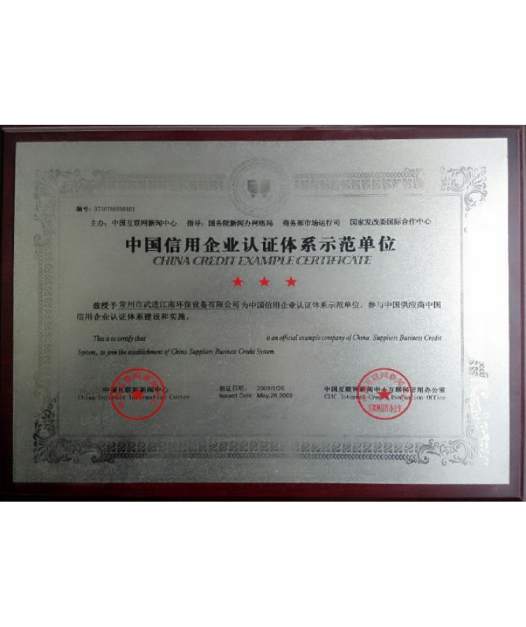 • 中國信用企業認證體系示范單位