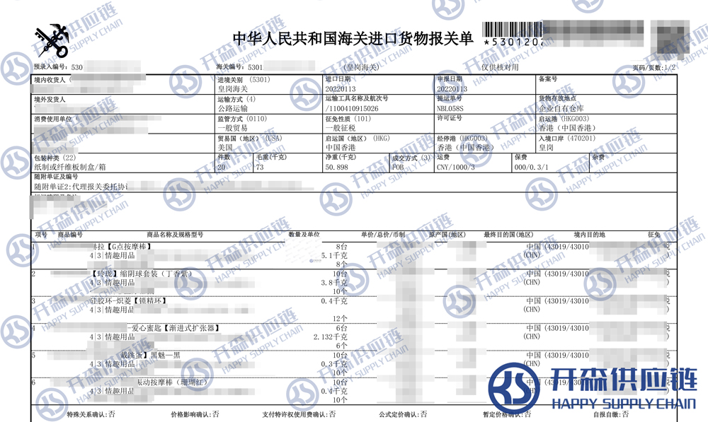 一、成人用品進(jìn)口報關(guān)代理案例詳情