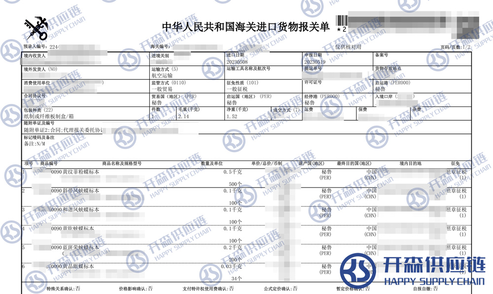 一、秘魯蝴蝶標(biāo)本進(jìn)口報(bào)關(guān)代理案例詳情