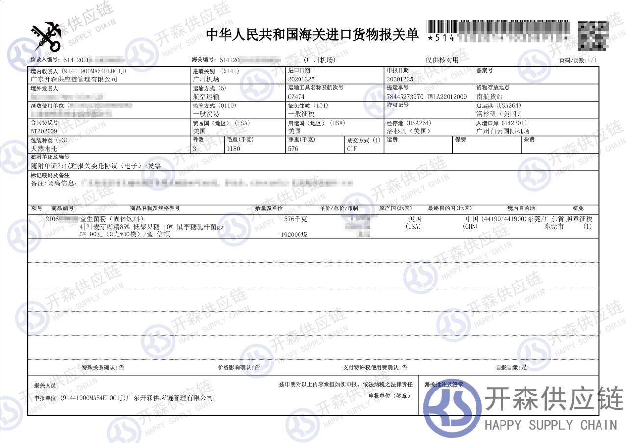 【本文結語】 上述就是【進口案例】益生菌粉(固體飲料)進口報關代理服務的全部內容,希望能對您有所幫助,如有固體飲料進口報關上任何疑問及問題可隨時在線聯系我們或撥打 18002611553,開森供應鏈擁有豐富的固體飲料進口報關操作經驗及案例,10余年進口經驗為您所用,各類進口疑難都能為您一一解答及協助快速處理解決!