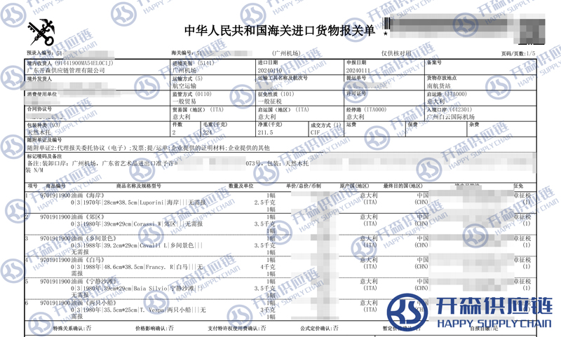 一、廣州機(jī)場(chǎng)意大利油畫進(jìn)口報(bào)關(guān)代理案例詳情